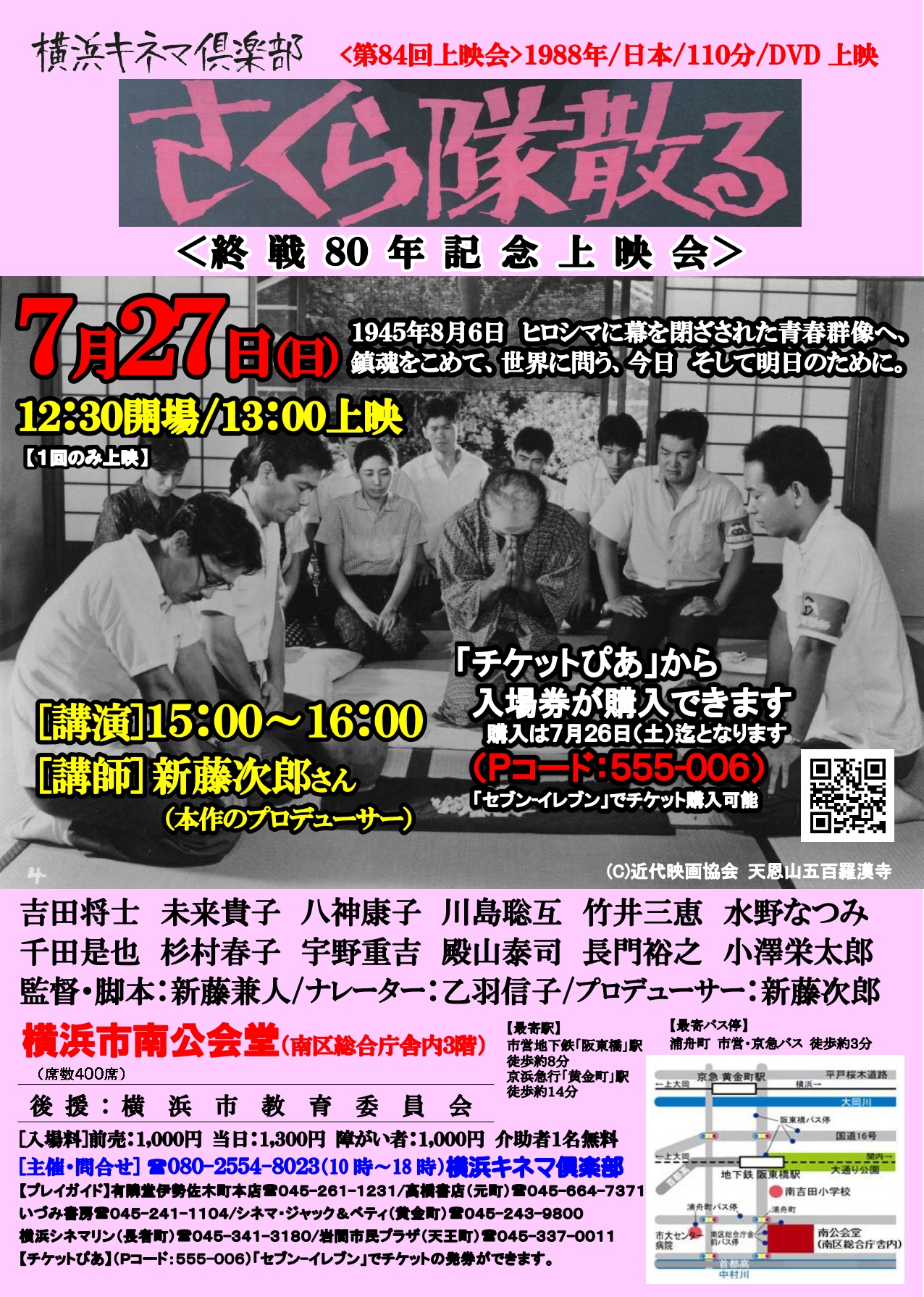 神奈川県横浜市南区浦舟町2丁目33番地 南区総合庁舎内3階 2025/07/27~2025/07/27 終戦80年記念上映会