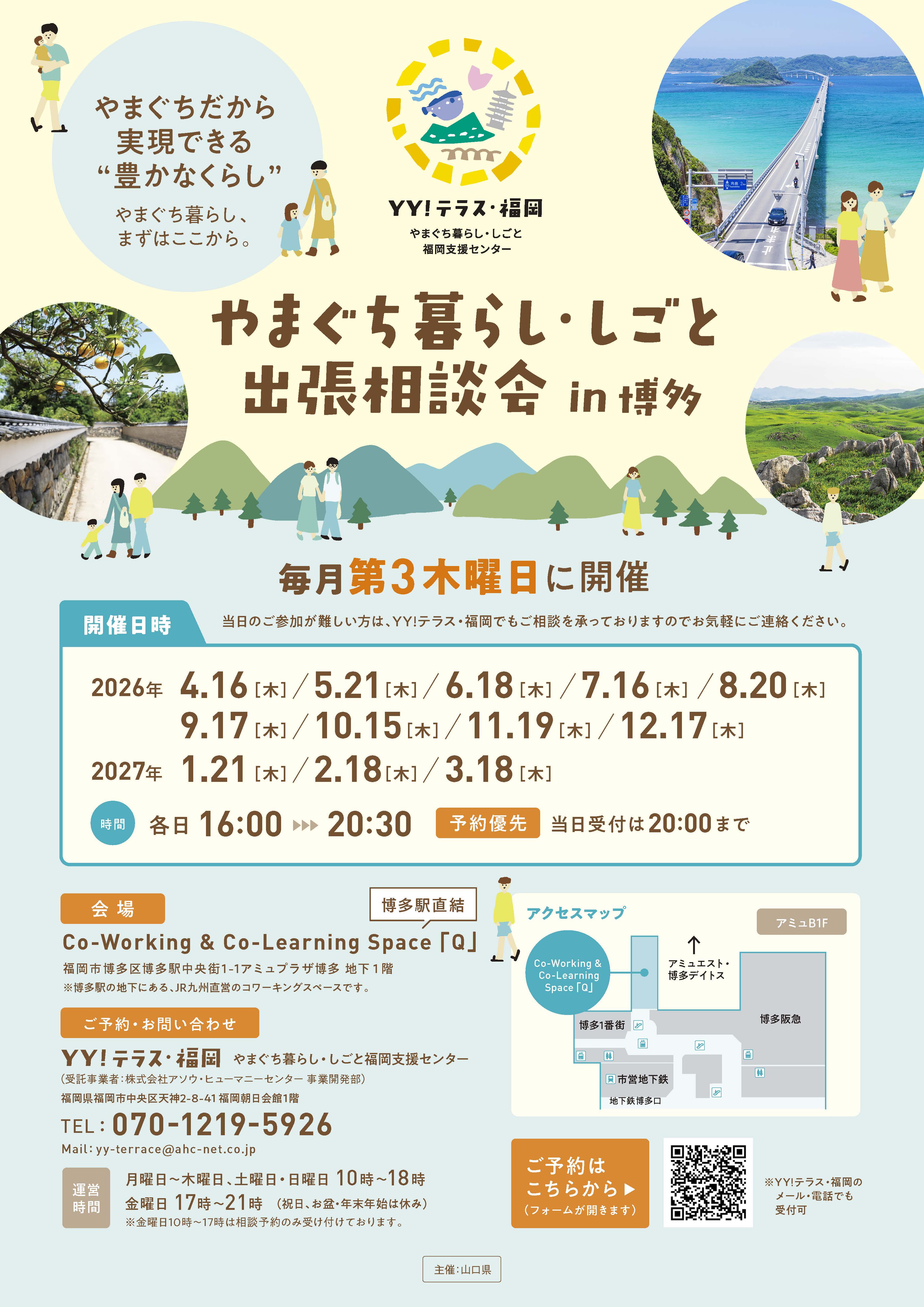 福岡県福岡市博多区博多駅中央街アミュプラザ博多地下1階 2026/06/18~2027/03/18 山口県への移住や就職相談を【毎月1回】博多で開催いたします!