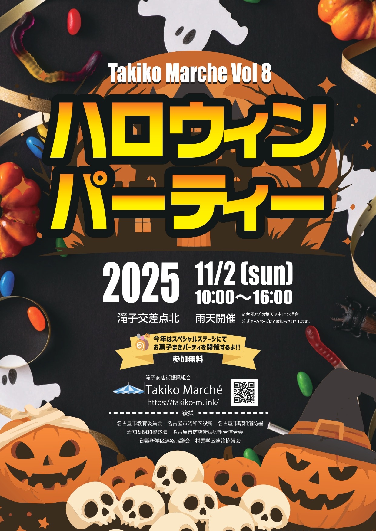愛知県名古屋市昭和区滝子町26-11 2025/11/02~2025/11/02 多彩なステージ ・ 美味しいグルメ ・ 楽しいマルシェが満載! ~ さぁ、みんなで楽しくハロウィンパーティ! ~ ★★★今年は「お菓子まきパーティ♬」もやるよ!★★★