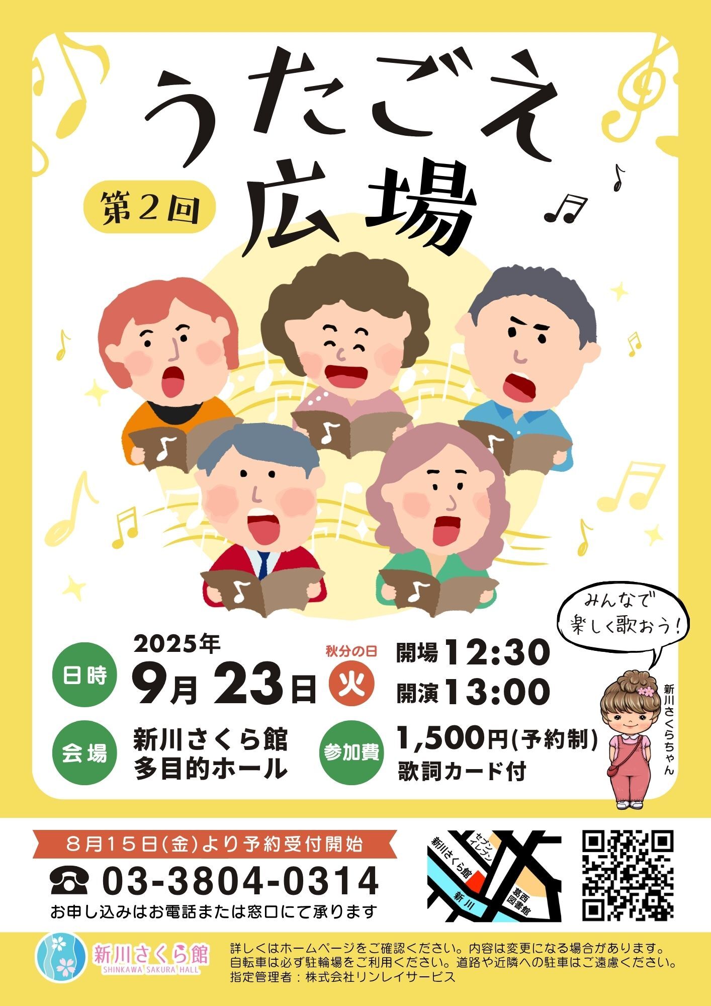 東京都江戸川区船堀7-15-12 2025/09/23~2025/09/23 昭和の歌謡曲やフォークソングを、プロの生演奏にあわせてみんなで一緒に歌う