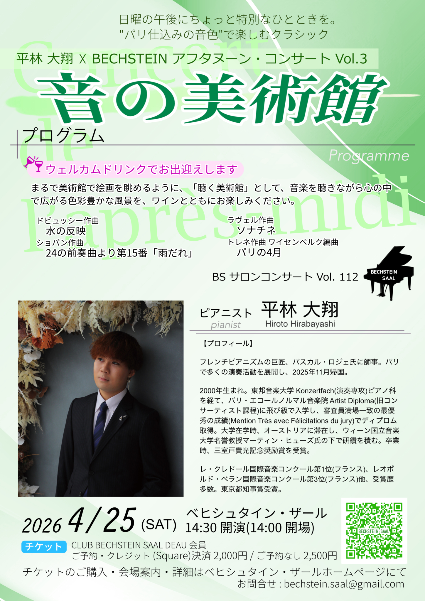 東京都大田区千鳥 2026/04/25~2026/04/25 日曜日の午後にちょっと特別なひとときを。 "パリ仕込の音色"で楽しむクラシック
