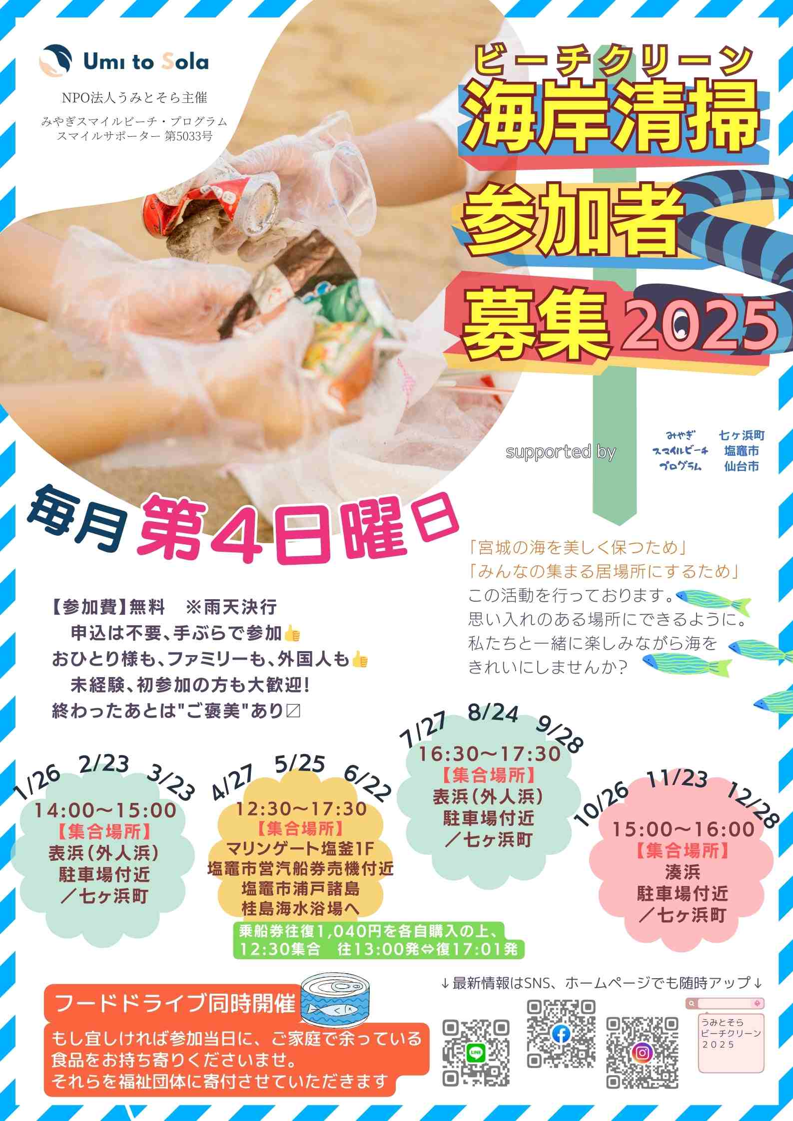 宮城県宮城郡七ヶ浜町花渕浜浜沼28-10 2025/03/23~2025/03/23 私たちと一緒に楽しみながら海をきれいにしませんか?