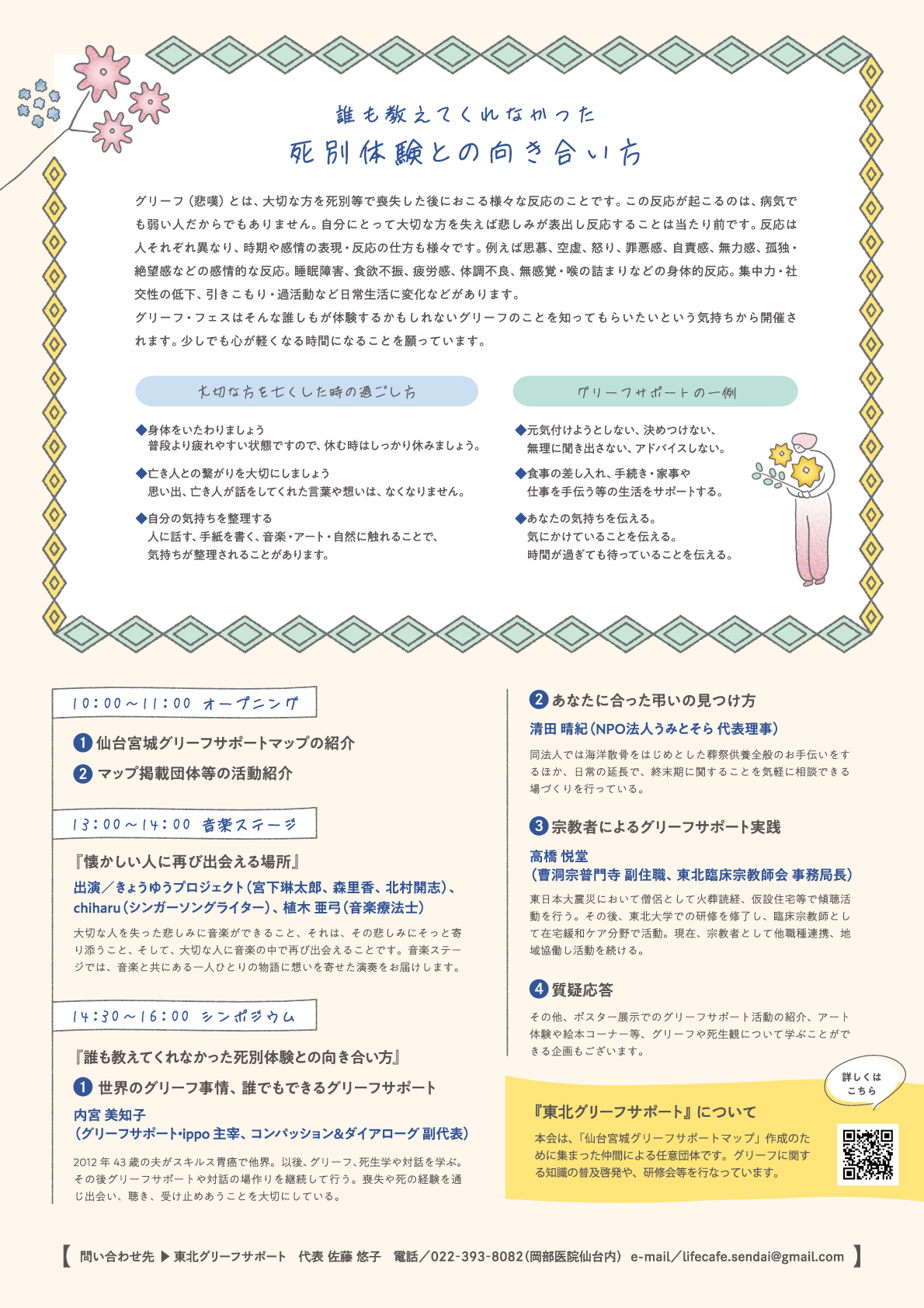 | 主催者 | 東北グリーフサポート | 最寄り駅 | 南北線勾当台公園駅下車、「公園2」出口から徒歩7分(約450メートル) |