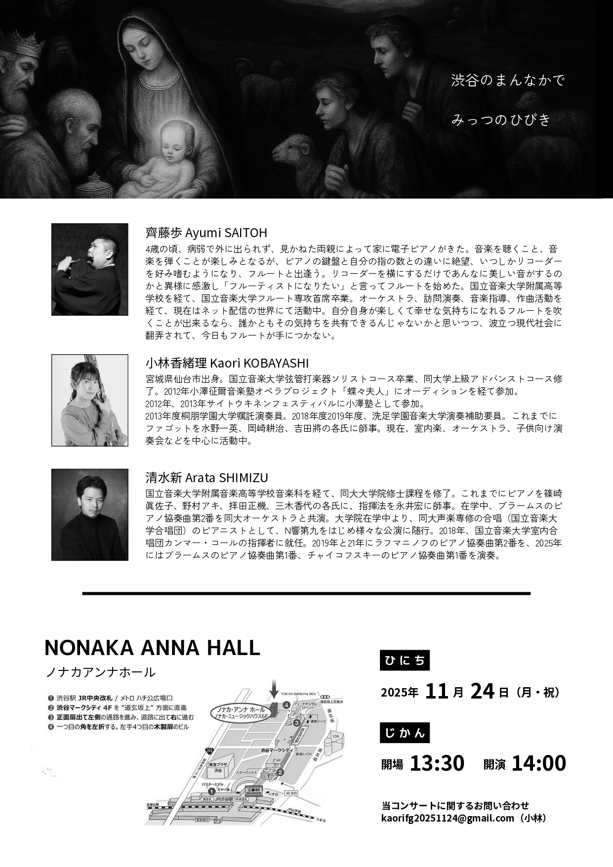 ■日時:2025年11月24日(月祝)14:00開演(13:30開場)■会場:ノナカ・アンナホール(ノナカミュージックハウス6F)