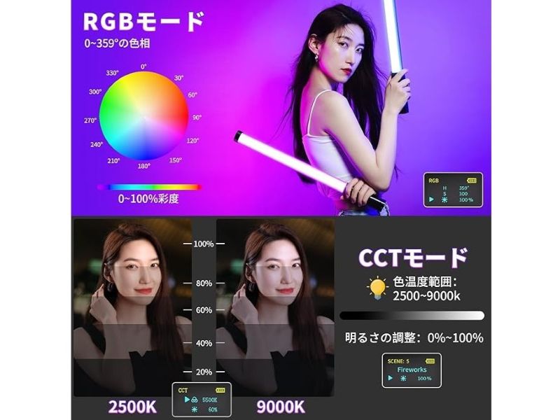 | 方式 | RGBフルカラー/CCT両対応(無段階調光) |