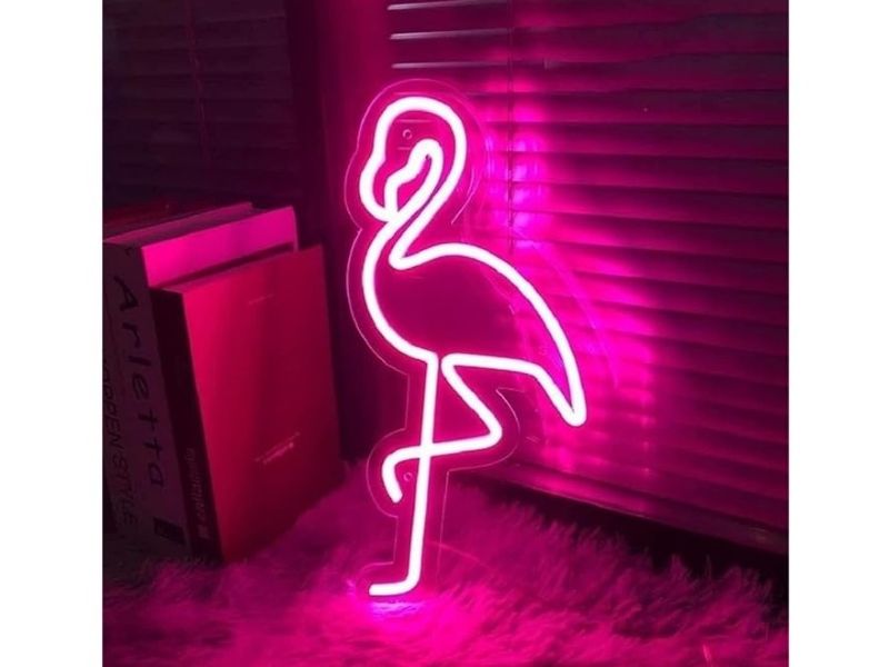 ピンクのフラミンゴが壁面で映えるネオンサイン。南国・リゾート・バー風の世界観づくりはもちろん、フォトブースやポップアップの“撮りたくなる背景”にも好相性です。スリムなシルエットで設置面の主張を邪魔せず、距離があっても輪郭が読み取りやすいのが強み。導線のランドマークやレジ背面のアクセントにどうぞ。