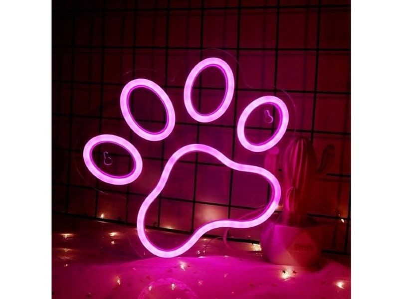 肉球シルエットがパッと目を引くネオンライト。約W250×H220mmのちょうど良い存在感で、ペット関連のフォトブースや受付背面の“映え”づくりにぴったり。USB給電で取り回しがラク、5段階の明るさ調整で会場照度や撮影環境に合わせた微調整も簡単です。ケーブル長は約2mあるため、レイアウトの自由度も確保できます。