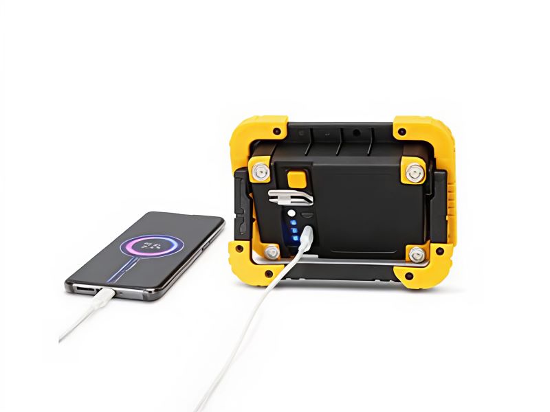 このポータブル投光器は、最先端のCOBチップ技術を用いており、全光束8000lmの高輝度照明を実現しています。 暗い場所でもクリアな視界を提供し、効率的な作業をサポートします。3つの異なる点灯モードがあり、状況に応じて自由に切り替え可能です。 さらに、強力なマグネットと180度調整可能なホルダーにより、どんな金属面にも簡単に固定し、希望の角度で使用できます。 USB充電式でありながら、モバイルバッテリーとしても機能するため、スマートフォンやタブレットの充電が可能です。