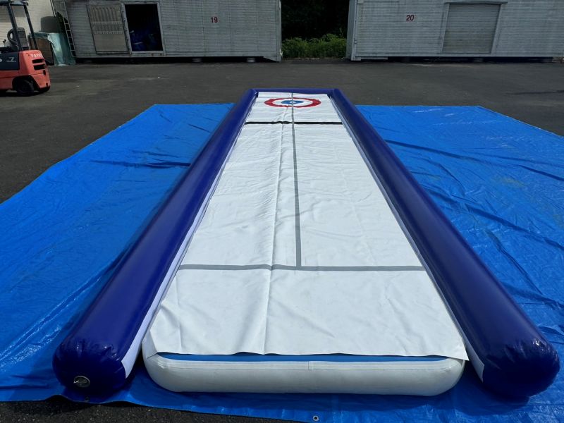 エアー式カーリングは、空気で膨らませるだけの簡単設置で屋内外どちらでも楽しめる新感覚カーリングゲームです。軽量のストーンを使うため小さなお子様でも安心して投球でき、1対1の真剣勝負が手軽に味わえます。 送風機と予備機、シート、ストーン一式がセットになっており、搬入から運営までスムーズに行えるのが特長です。お問い合わせお待ちしております!