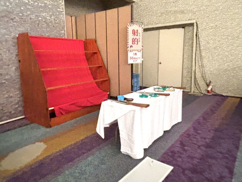 先輩の現場について行ったときの写真になります。社内イベントのコンテンツの1つとしてご利用していただきました。室内でものぼりを一緒に置くことで一気に縁日の雰囲気に変えることが可能になります!大人の方でも案外むずかしいので盛り上がること間違いなしです!!射的セットの設置も2人いれば難なくできるので、気になる方はぜひお問い合わせください!