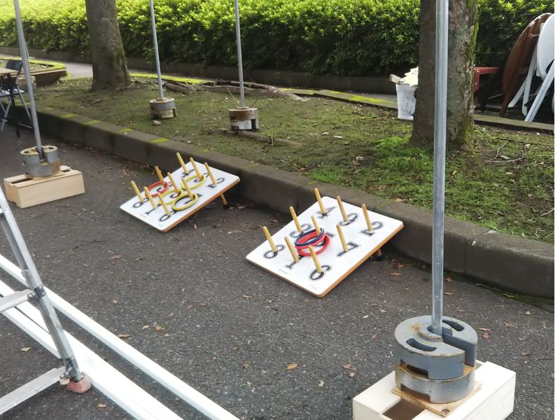 毎年恒例のマンションの夏祭りの遊具の一つとしてご利用いただいた、大人気商品です。 組み立てが簡単にでき、遊び方も輪っかを狙った棒に投げるだけととてもシンプルです。 そのためお子様から親御さんまでどんな世代も楽しめる商品です。 棒の下には数字があるので輪っかが入った数字で競って遊ぶことも可能です。是非イベントにご利用ください。