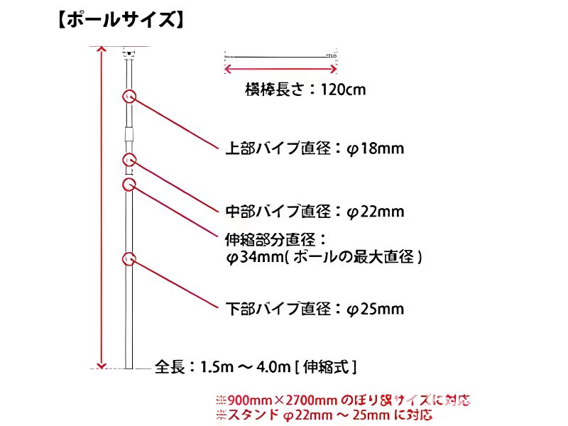 | 対応のぼりサイズ | 900×2700mm |
