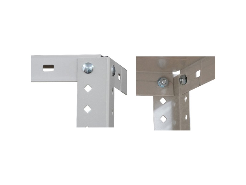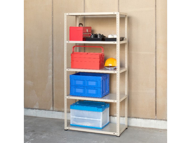 - A.この種類のスチール棚は1段ごとに均等に荷重を載せる設計ですので、載せる物は棚全体に分散させて置くとより安全です。偏った重さを一点に載せると耐荷重性能が低下する場合があるのでご注意ください。