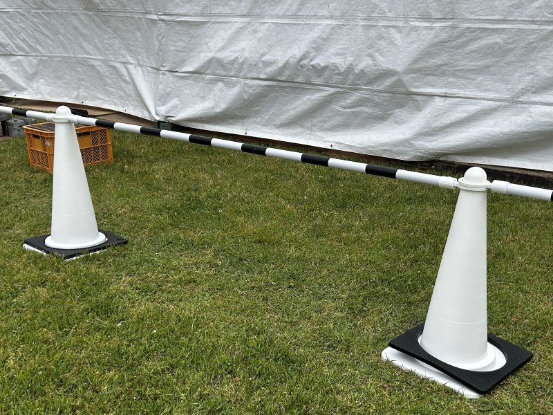 先日福島県南相馬市にテントやカラーコーンを設営してきました。 カラーコーンは青だけではなく赤色もあり、バーも青/白、黄/黒、赤/白もございます。 コーンを置いてバーを載せるだけで設置ができること、重量も重くないので広い範囲を囲いたい場合にとても便利な商品となっております。 数量も大量に保管しておりますので、是非ご検討くださいませ!
