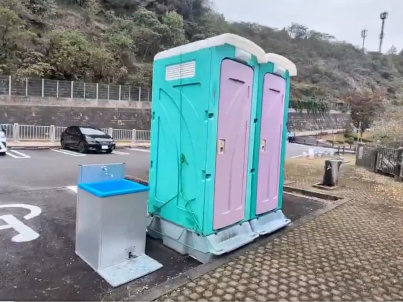 仮設トイレと手洗いシンクがあったので動画を撮ってみました!