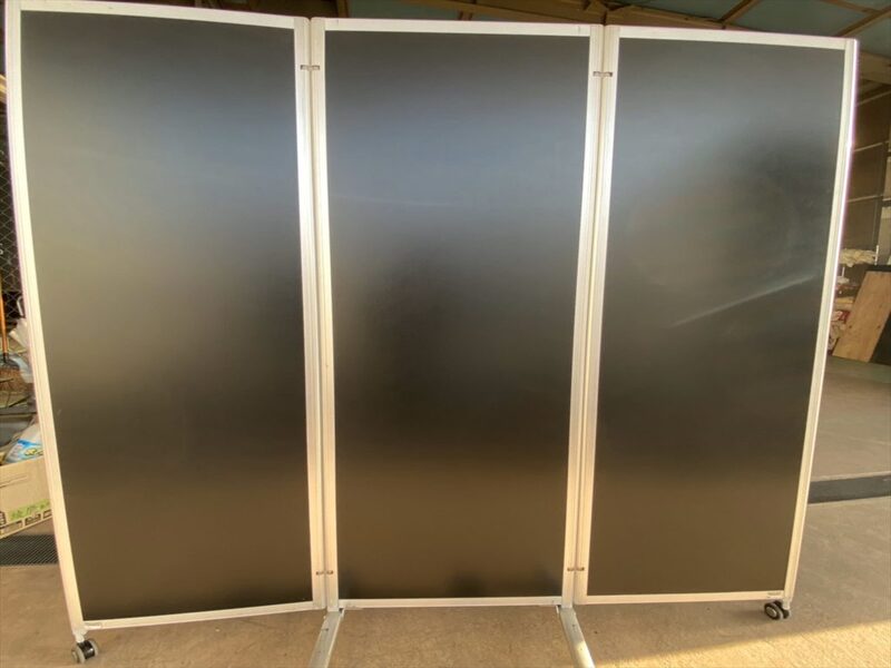 三つ折りパーテーションの黒バーションです! 白の三つ折りパーテーションより、一気に引き締まりますね。 スタイリッシュさを感じる黒もおすすめ商品です!シックでかっこいい会場の雰囲気に合わせていかがでしょうか。 白と黒を組み合わせてもかっこいいと思います!気になった方是非お問い合わせお待ちしておりますよ!!!