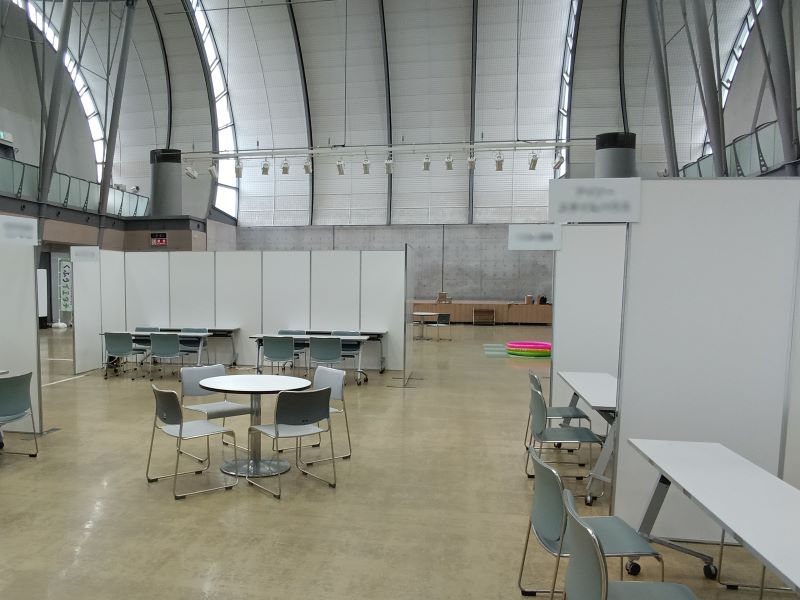 工場内の食堂にシステムパネルを設置させていただきました。 イベントブースの仕切りとして使ったり、ポスターを貼ったりなど、様々な用途でご使用可能です。 数枚でも100枚でも、高さもレイアウトも、もちろん設営も!ご希望に合わせてお手配させていただきます! 詳しい情報はコチラをクリックしてご確認くださいませ。 多様なレイアウトで会場の雰囲気にあわせた設置が可能ですのでぜひ弊社にお問い合わせくださいませ。