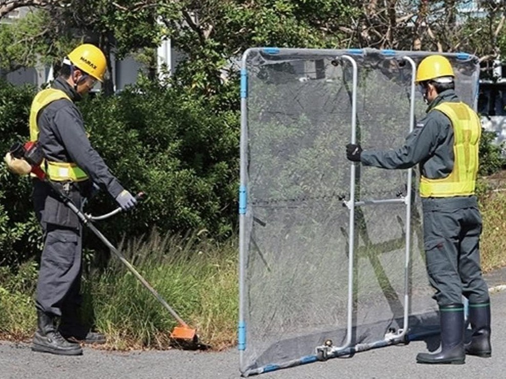 ハラックスの草刈作業飛散ガード HBE-1827K は、幅270cm×高さ180cmのワイドネットで刈払機による飛石・異物の飛散をしっかり防止。 アルミ製フレーム&折りたたみ式の軽量設計で、キャスター付きだから現場間の移動もラクラクです。 標準でネット1枚とφ25.4パッカー16個が付属し、ネットは交換可能なので経済的に長く使えます。 お気軽にお問い合わせくださいませ!