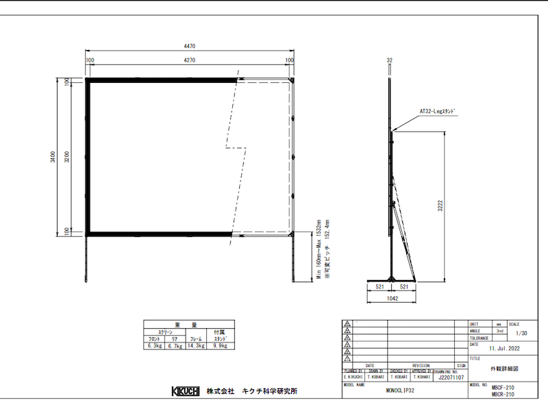 | 外形サイズ | 幅(W)4,470 × 高(H)3,400mm(設置時のフレーム外寸) |