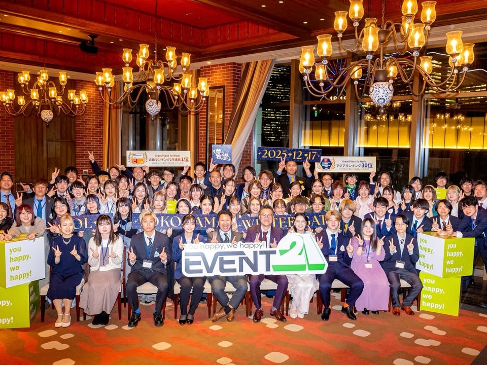 はい!イベント21は「働きがいのある会社」ランキングにて、女性・若手・近畿部門にて日本一を獲得しており、働きがい(やりがい×働きやすさ)のある職場づくりを目指しています。