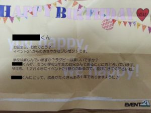 お知らせ続きを読むこんにちは。 イベント21人事担当の出口です。 イベント21本社では、月に数回、「会社訪問」の際に「おもてなし」と呼ばれ… Read more →