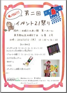 お知らせ続きを読む皆さんこんにちは。 イベント21東日本マネージャーの中野です! 今度12/12(月)にイベント21祭り【東… Read more →