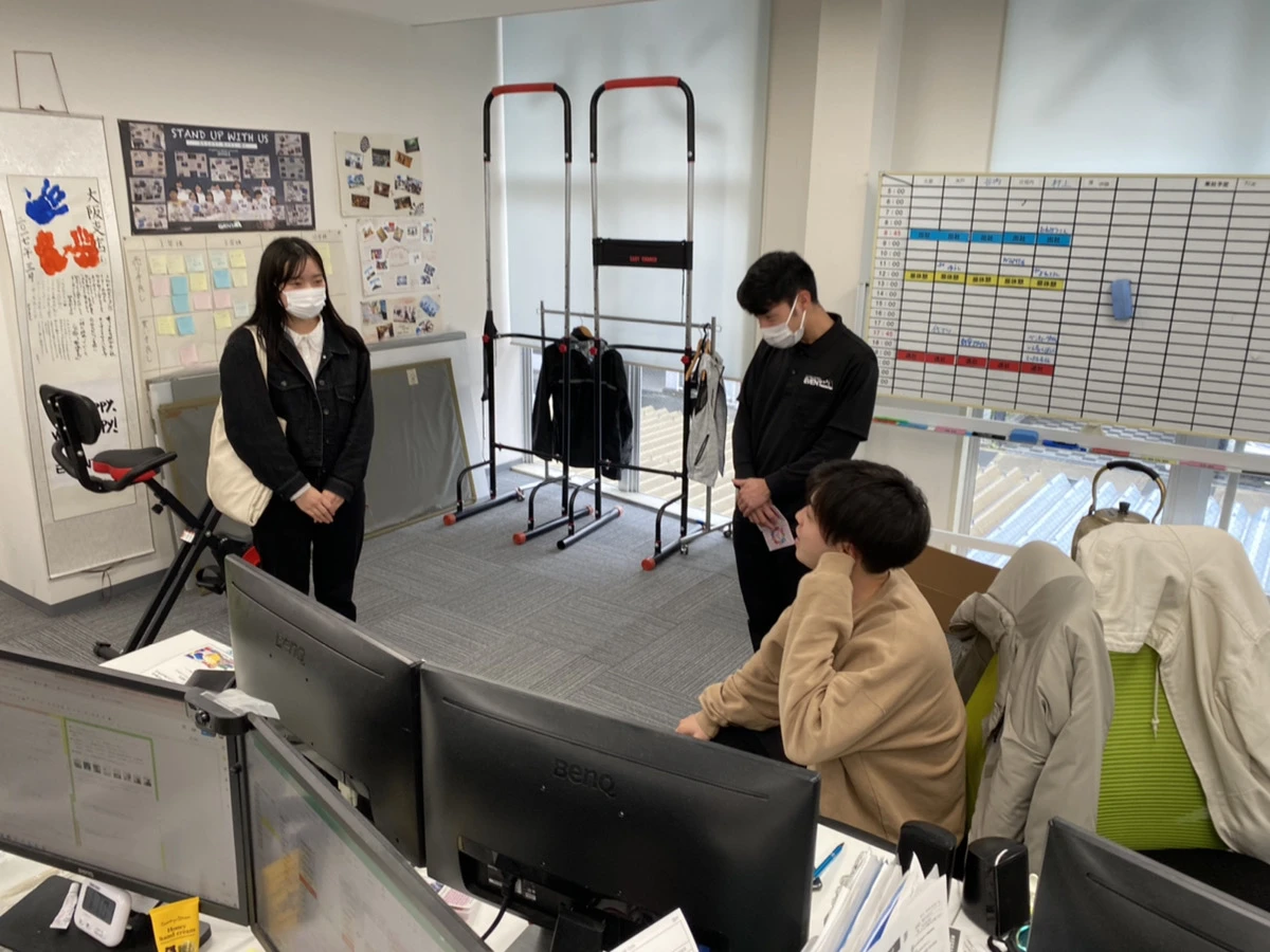ちょうど今日(11/24)に支店内説明会を開催をしていたのですが、その説明をしていたのが1年目の新卒が説明をしてくれていて、なぜこういうことができるのかというと、社員一人ひとりが会社のことを深く知っていってるからこそできることで、入ってすぐの時から先輩のそういった姿を見ていたり、自分たちもその中に入っていくからこそ、説明会を自分たちで開催できるぐらいになってきているんです!