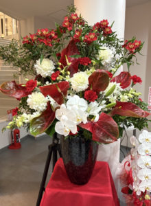 学校さんのテーマカラーとして、赤と白をメインとしたお花を準備させて頂き、すごく華やかでした!