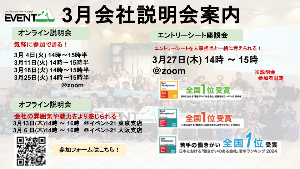 まだまだ、イベント21を知ってもらえる採用イベントが盛りだくさん!