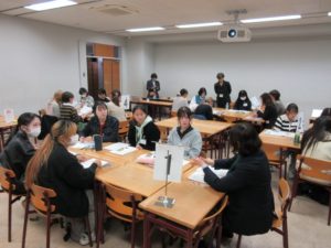 歴史文化学科の2年生20名に対し、企業4社でグループに分かれて話す感じで短い時間ずつではありますが全員と話しました!
