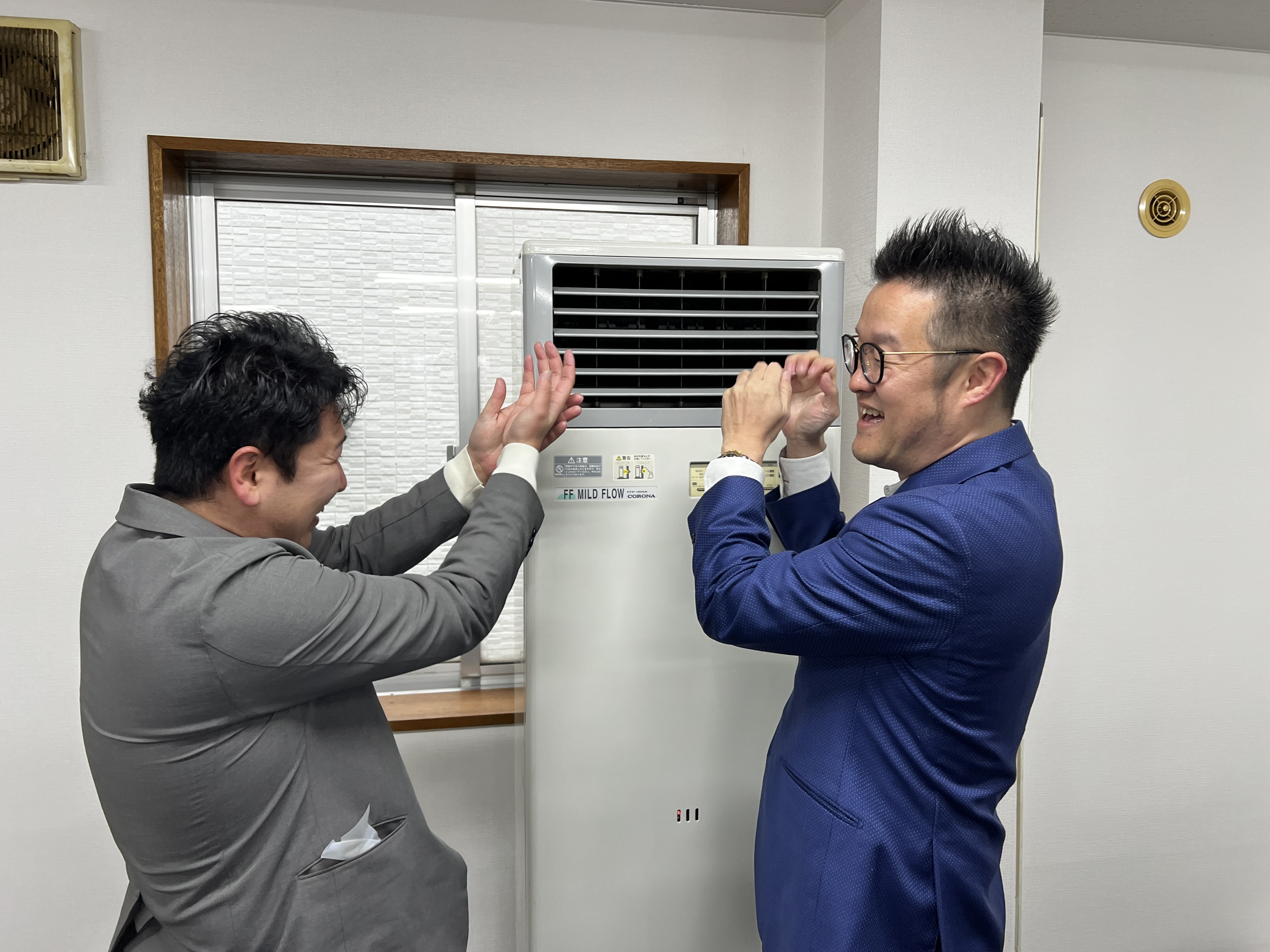 北海道には灯油ストーブがあります🔥あたたまる社長と小杉さん笑