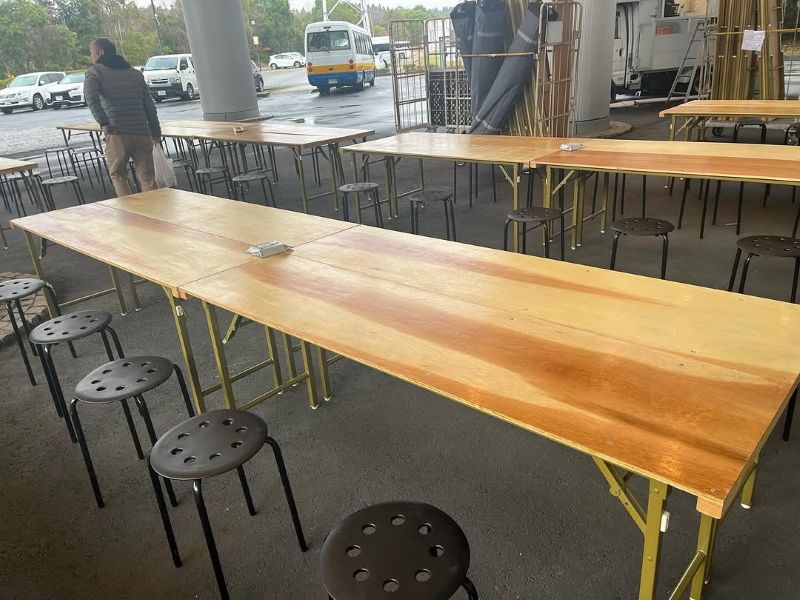 今回は テント21張・テーブル100台・パイプ椅子300脚 と、かなりの物量を一日で設営する現場でした。 限られた時間の中で効率よく作業を進めるために、先輩スタッフからテントの骨組みの立て方や天幕のかけ方のコツ 時短の方法などを教えていただき、実際に取り入れることで大幅に作業スピードを上げることができました。 毎年ご利用いただいているリピーターのお客様ということもあり、先輩が規模感や流れを把握していたので 段取りよく進められたのも大きなポイントです。今回は 2日間で5,000人〜8,000人規模 のイベントということもあり 多くのお客様が安心して快適に過ごせるように、チーム全体で力を合わせて準備しました。大量の備品を設営し終えた達成感と お客様の喜ぶ姿を思い浮かべながら作業できたのが印象的な現場でした。