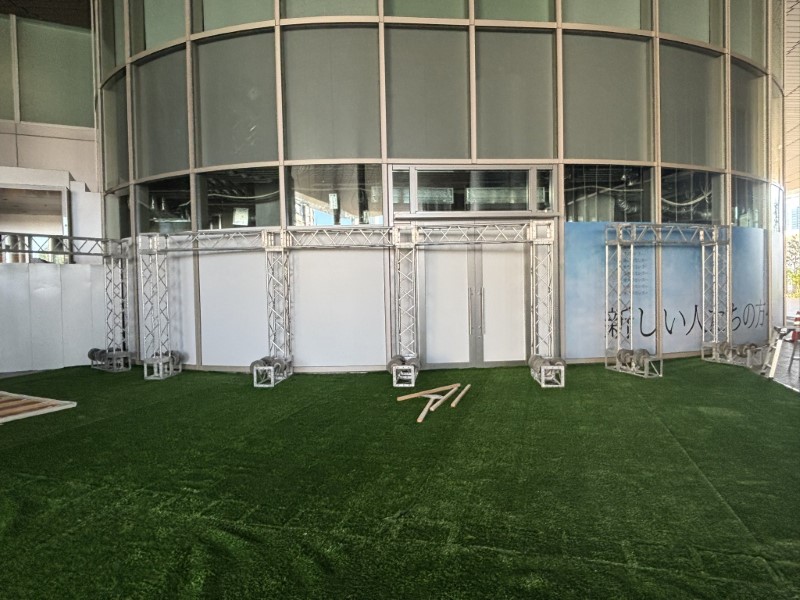 大阪・長居公園で開催された「MBSラジオ秋祭り2025」にて、展示ブース用のトラス入場門とウェイトの設営を担当しました! 今回は車両展示ブースということで、広い屋外会場の中でもひと目で分かる入口づくりをご希望されていました。 お客様は初めてのブース出店で、どのように装飾すれば目立つのかイメージが難しいとのことで、こちらからレイアウトやサイズ感をご提案。図面を添付しながら、より具体的にイメージしていただけるよう丁寧に説明を進めました。 当日もお客様と一緒に商品を持ったり位置を調整したりしながら、協力してブースを形にしていきました。お客様から「一緒に作り上げている感じがして嬉しかった」とのお言葉をいただき、とても励みになりました!