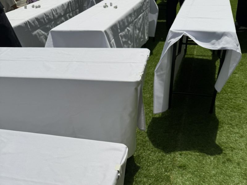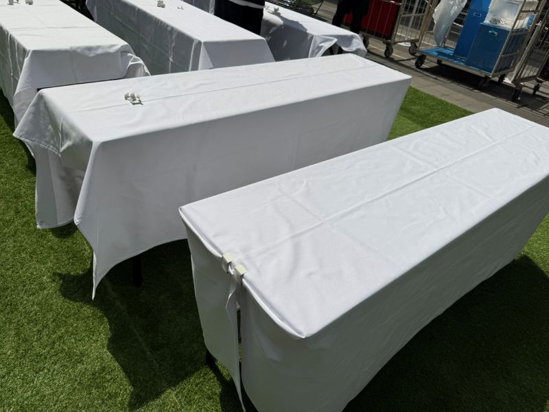 先日、小学校のグラウンドに57張設営してきました!テントの他にテーブルなどの備品もレンタルいただいたため、レンタル量が多い中で予算感も視野に入れながら細かいヒアリングをしながら設営まで進めていきました。 お客様から事前にテントを立てるレイアウトを頂いていたため、微調整は必要だったもののスムーズに設営できました!レイアウトの図があると設営しやすいですが、弊社スタッフが事前に現場に行って実際に確認してレイアウトを 考えることも可能ですので、ご不明な点や不安な点はお気軽にご相談ください。57張のテントやテーブル、ウェイトを30名弱で7時間ほどかけて設営いたしました。今回のように車両がグラウンドの中に入れない場合でも臨機応変に対応して 設営させていただきますのでご安心ください!