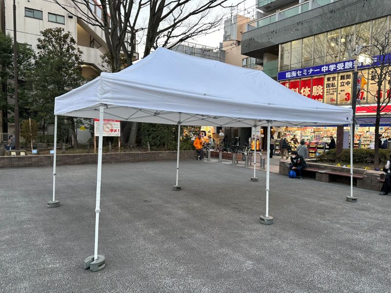 先日東京都渋谷区に単管バナーの設置に行ってきました! 今回はフェスの物販での使用だったためテント6張りに対して単管バナーを設置しました。 施工時間はおよそテント立ち上げ後2時間程度になります。 お客様に対してのアイキャッチになる為、単管にバナーを取り付けてもらうとすごく存在感が出ます。 イベントでの物販で大活躍の単管バナー。ぜひご利用くださいませ。