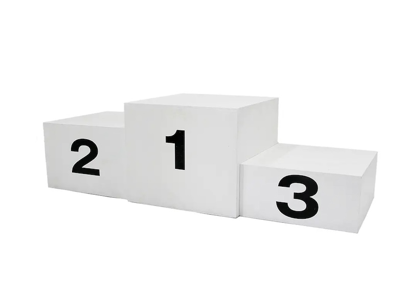 順位を発表する際に使われる代表的な表彰台です! 有名なところではオリンピックやインターハイなどスポーツ大会の際に使用されます。 団体競技の場合は使うことも少ないですが、個人競技ではよく使われるので目にすることも多いのではないでしょうか? 表彰台があるだけで競技の締めくくりも華やかになりオススメです!運動競技だけに限らず、大食い選手権など順位を決める イベントなら、どんなイベントでもお使いいただけます!お問合せお待ちしております!