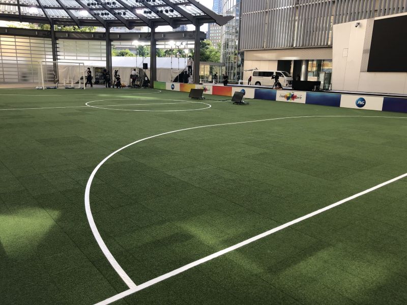 スポーツ人工芝は人工芝を使用したスポーツ対応タイルです。タイルを並べて連結するだけというシンプルな施工方式で、接着せずに設置が可能なため、施工時間の短縮・撤去の簡便化を実現します。 見た目の“芝生らしさ”と、スポーツ利用に耐えうる安全性や遊び心も兼ね備えており、サッカー、フットサル、ラグビー、ブラインドサッカーなど、さまざまな競技・体験用途に対応可能です。 また、タイル基材に高衝撃共重合体のポリプロピレンを採用し、衝撃吸収性を持たせつつ、タイル式床材としての連結性や安定感も確保しています。 イベント会場、体験広場、屋内外問わず多用途に利用でき、1ヵ月以上の長期レンタルもご相談可能です。