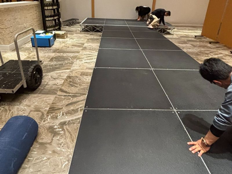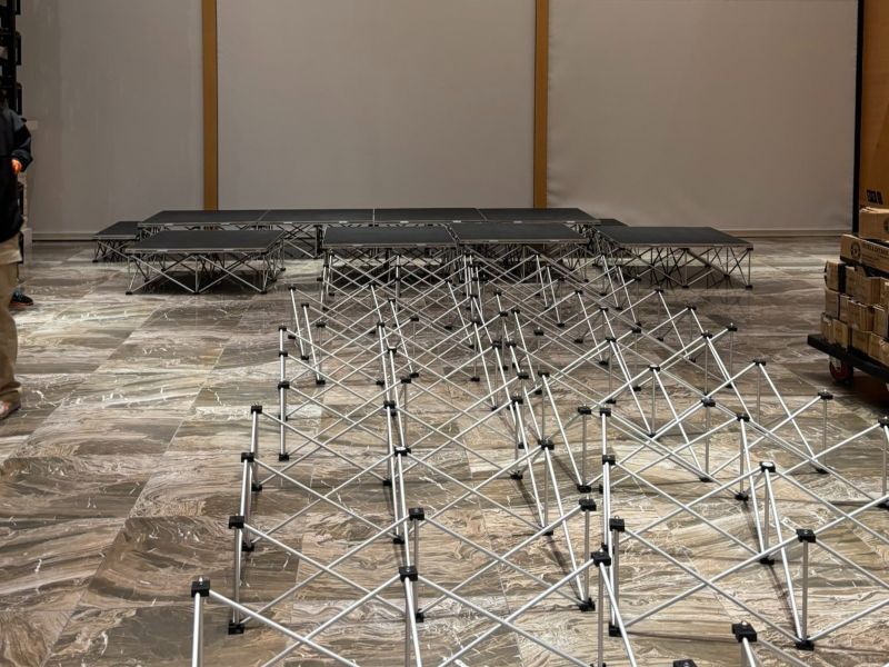 専門の業者に頼まなくてもお客様でステージを作ることが可能です。難しい工程を省いて作りやすさを基本に設計されているので説明にそって組み立てるだけです。ちなみにこちらは高さが20㎝の物となります。