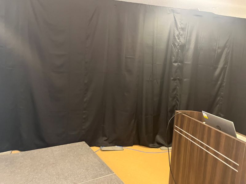 北橋さんの現場で、ステージ・暗幕・音響の設営を担当しました。思っていたよりレイアウトが複雑でしたが、現場で試行錯誤しながらうまく対応できました。
