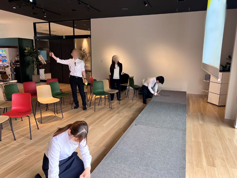 お客様はイベント初開催ということもあり、事前に台本を共有してもらえたので、こちらから先回りして提案し、最終確認までしっかりできたのが良かったです。ケーブルも予備を持っていって正解でした。