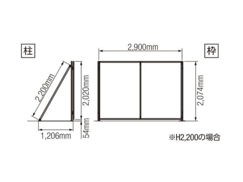 | サイズ | 幅(W)2,900mm×奥(D)1,206mm×高(H)2,200mm |