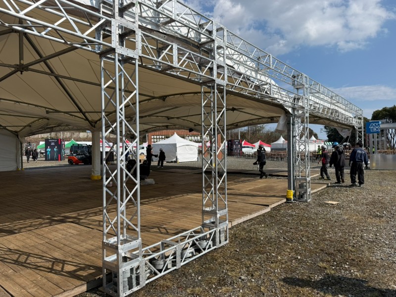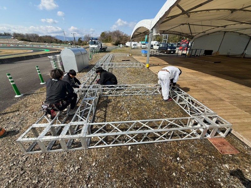 今回、F1日本グランプリのファンゾーンにて、設営を担当させていただきました! 昨年に引き続き2回目のご依頼となり、リピーター様としてお声がけいただけたことを大変嬉しく思っております! 会場では、テント装飾用のトラス設営をはじめ、飲食ブースに必要な備品の納品まで幅広く対応いたしました。 特に今回は、トラスへのパネル設置をお客様ご自身で行われる予定だったため、スケジュール調整や段取りのすり合わせに注力し、 スムーズに施工が進むよう事前準備を徹底しました。 設営時には安全対策を最優先に、一つひとつの工程を丁寧に確認しながら作業を実施。 本番期間中も強風や人の動きによる影響を考慮し、倒壊防止のための補強をしっかりと行い、安心してイベントを楽しんでいただける環境づくりに努めました。 今後も、お客様のご要望に寄り添いながら、安全でクオリティの高い現場づくりを提供してまいります!