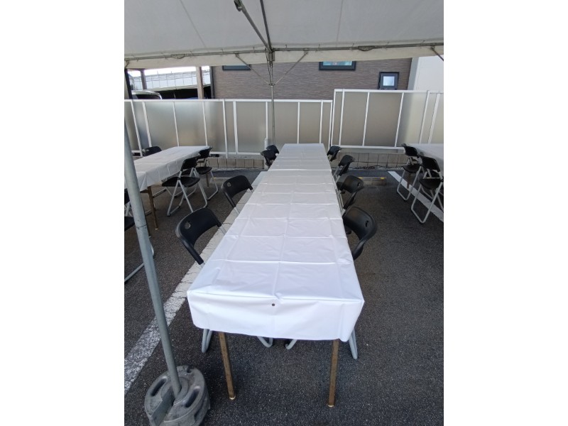 イベント会場に安価で大量に机を並べたい時の定番商品のベニヤテーブルのご紹介です。 ソーシャルディスタンスを意識して学園祭や文化祭、お祭り会場の受付、カウンタテーブルに、休憩場のテーブルなどにさまざまなご利用用途お使いいただける便利なベニヤテーブルです。 木製なので、表面が凸凹していますが、テーブルクロスを一緒に使うことによって、テーブルの見た目や表面の凸凹を若干抑えることができます。 用途によってさまざまなシーンで活躍するベニヤテーブルのレンタルはいかがでしょうか。