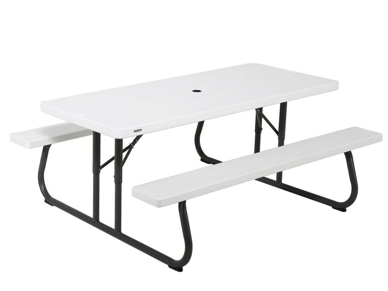 野外イベントの「座る・食べる・打合せする」を一台で叶える折りたたみ式ピクニックテーブルです。実用的なサイズでベンチ一体型のため設置点数が少なく、回収もスムーズです。天板・座面はポリエチレン、フレームはスチール仕様のため、屋外シーンでも扱いやすく、連続設置でフードエリアや休憩導線づくりにも活躍します。清潔感のあるホワイトは写真映えもしやすく、ファミリーイベントやマルシェ、会社BBQまで幅広く対応可能です。折りたためるので搬入・撤去の時短にも貢献します。