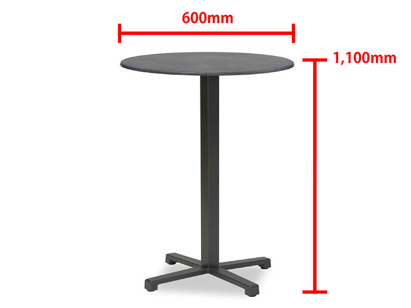 ガーデンハイカウンターテーブルは、屋外でも使用できるスタイリッシュなハイテーブルです。天板には耐候性に優れたトパリットを使用し、支柱は鉄パイプ、ベースには鋳物を採用することで、高い安定感を実現しています。直径600mm・高さ1,110mmのサイズは、立食スタイルのイベントや展示会、レセプションに最適で、自然な交流の場を作り出します。シンプルでモダンなデザインは、屋内外を問わず空間に調和し、会場をおしゃれにします。