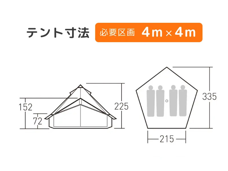 | 布サイズ | 幅(W)3350×奥(D)2150×高さ2250mm |