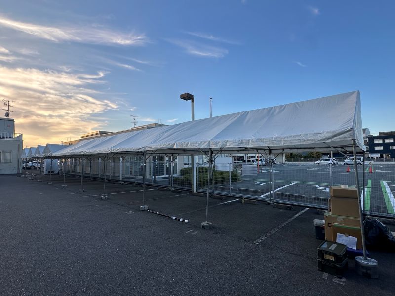 特典会のカメラ設置スペース用などに、3坪テントと20kgウェイトを手配・設営してきました!
