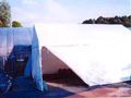 先輩のリピータ案件でテントを設営しました。 雨の中の設営でしたが、お客様総出で手伝ってくださりとてもスムーズに設営することができました。 テントの中を更衣室・休憩場所にとのことだったので、横幕も全方向囲う形で対応しました。