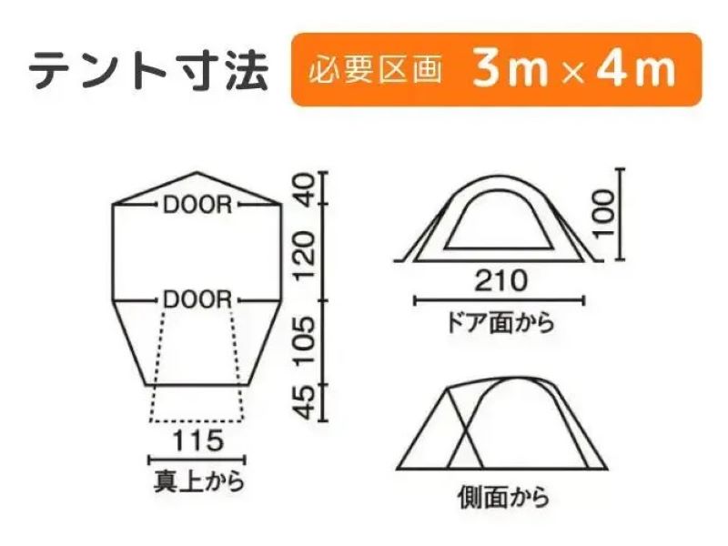 | タープサイズ | 幅(W)4600×奥行(D)4350×高さ(H)2300mm |