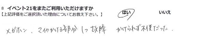 この度は、弊社のメガホンをご利用いただきましてありがとうございました。次回の開催の際も、是非よろしくお願い致します!